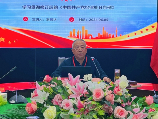 刘顺华围绕充分认识加强党的纪律建设的重要意义,深入领会习近平总书记关于全面加强党的纪律建设的重要论述,以落实《中国共产党纪律处分条例》为抓手,从严守政治纪律、组织纪律、廉洁纪律、群众纪律、工作纪律和生活纪律等六个方面进行讲解。