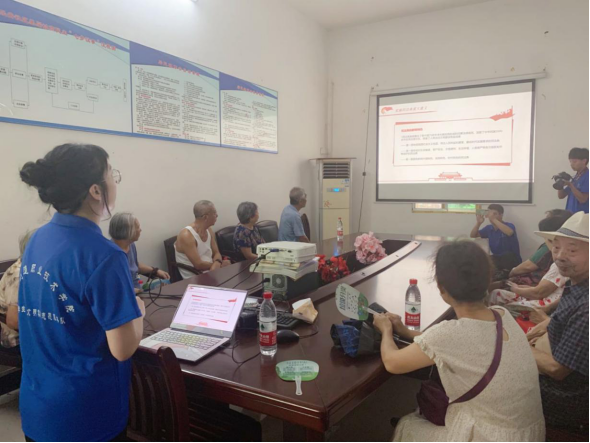 第三组志愿者通过室内的宣讲会,以图文视听等多种讲解方式,结合日常生活,重点围绕“垃圾的危害、什么是垃圾分类、如何进行垃圾分类”进行宣讲,告诉居民垃圾可分为可回收垃圾、厨余垃圾、有害垃圾和其他垃圾四大类。同时,向社区居民详细介绍了生活垃圾分类的意义、模式及常见的生活垃圾分类的标识等基本知识。随后设置“垃圾分类大比武”的实际操作环节,向活动现场的居民发放印有不同种类垃圾的卡片,让居民分别投放到四类垃圾桶里面,投放正确的居民发放小礼品作为鼓励,社区垃圾分类志愿者将垃圾分类玩出了新花样,吸引了现场居民的积极参与。