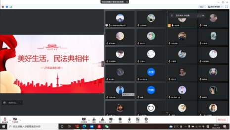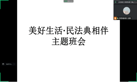 5月9日,21机自本科班辅导员李佳静组织线上腾讯会议“美好生活,民法典相伴”主题班会。通过此次班会,学生明白了《民法典》作为社会的基本法,是民族精神和时代精神的立法表达。