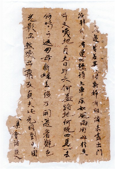 | 克亚克库都克唐代烽燧遗址出土的文书“韩倗赋”。 |
