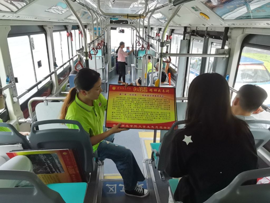 “回顾历史,数看红旗渠精神”志愿服务队在公交车上开展线下讲解