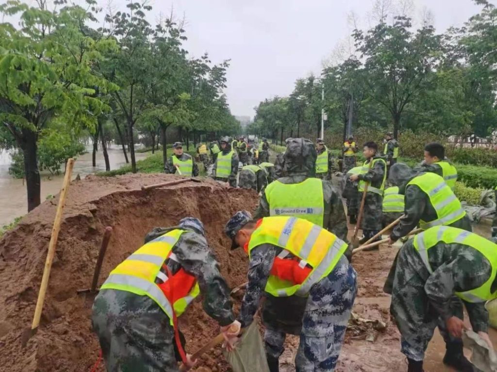 21日凌晨,贾鲁河祥符区段出现决口需要支援,该旅接到上级命令后,迅疾出动数百名官兵、几十台车辆,第一时间赶赴现场。