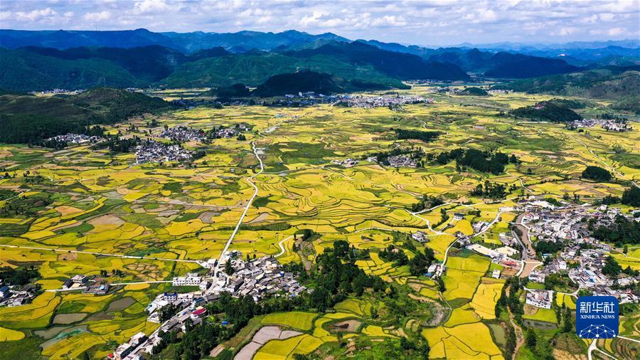 贵州省龙里县湾滩河镇的田园秋色(9月15日摄,无人机照片)。