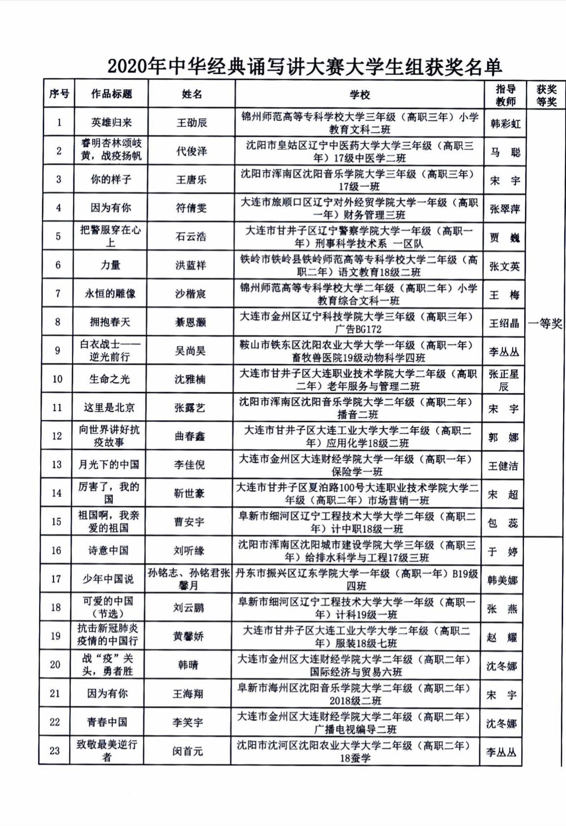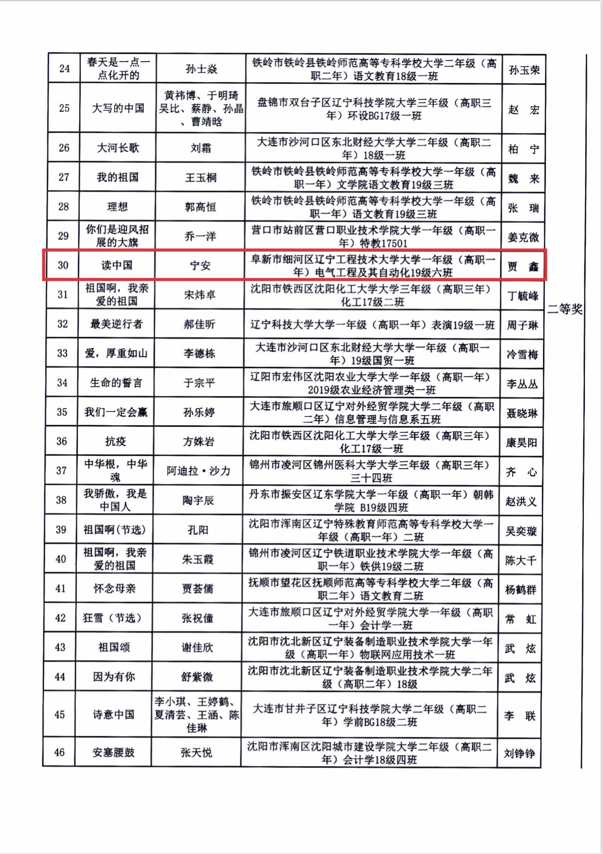 宁安同学荣获“中华经典诵写讲大赛二等奖”