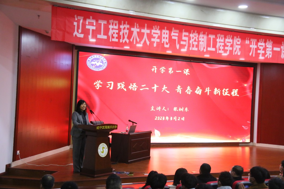 “寒梅雪中尽,春风柳上归”,春回大地,万象更新。3月2日晚6:30,副校长张树东在葫芦岛校区图书馆报告厅为电气与控制工程学院的学子们带来了一场别开生面的“开学第一课”。本次报告的主题是“学习践悟二十大 青春奋斗新征程”。