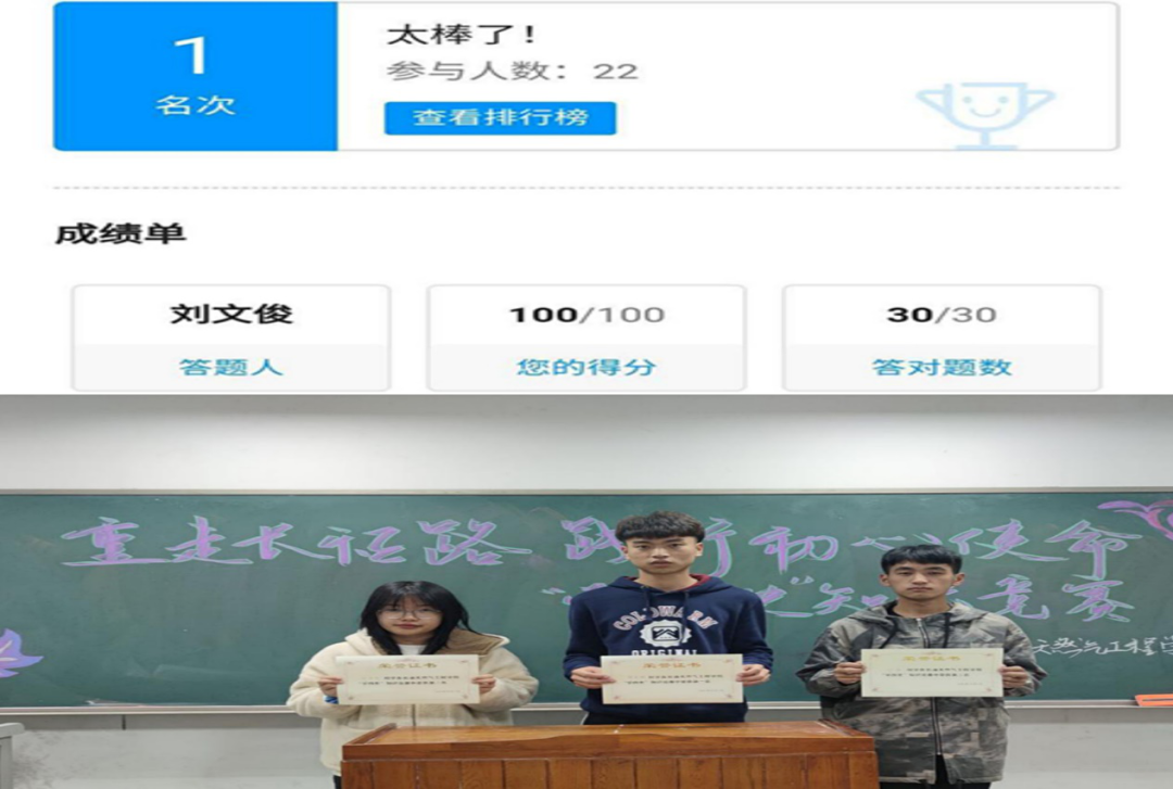 为了夯实关于“四史”的理论知识,将理论与实践相结合,10月17日学院开展“四史”学习教育线上知识竞赛,竞赛题目分为10道单选题,20道多选题,题目由系统随机抽取,总分100分,竞赛采用计时方式,增加了活动的趣味性和紧张感,学生答题倾情投入,竞赛氛围十分激烈。学院同时举办了征文、诗朗诵等多种活动,增强了同学们学习“四史”的主动性,加深了同学们对中国共产党的感情。使大家深刻认识到马克思主义的“行”、中国共产党的“能”和中国特色社会主义制度的“好”,深刻认识到红色政权来之不易、新中国来之不易、中国特色社会主义来之不易,从而更加树牢“四个意识”,坚定“四个自信”,坚决做到“两个维护”。