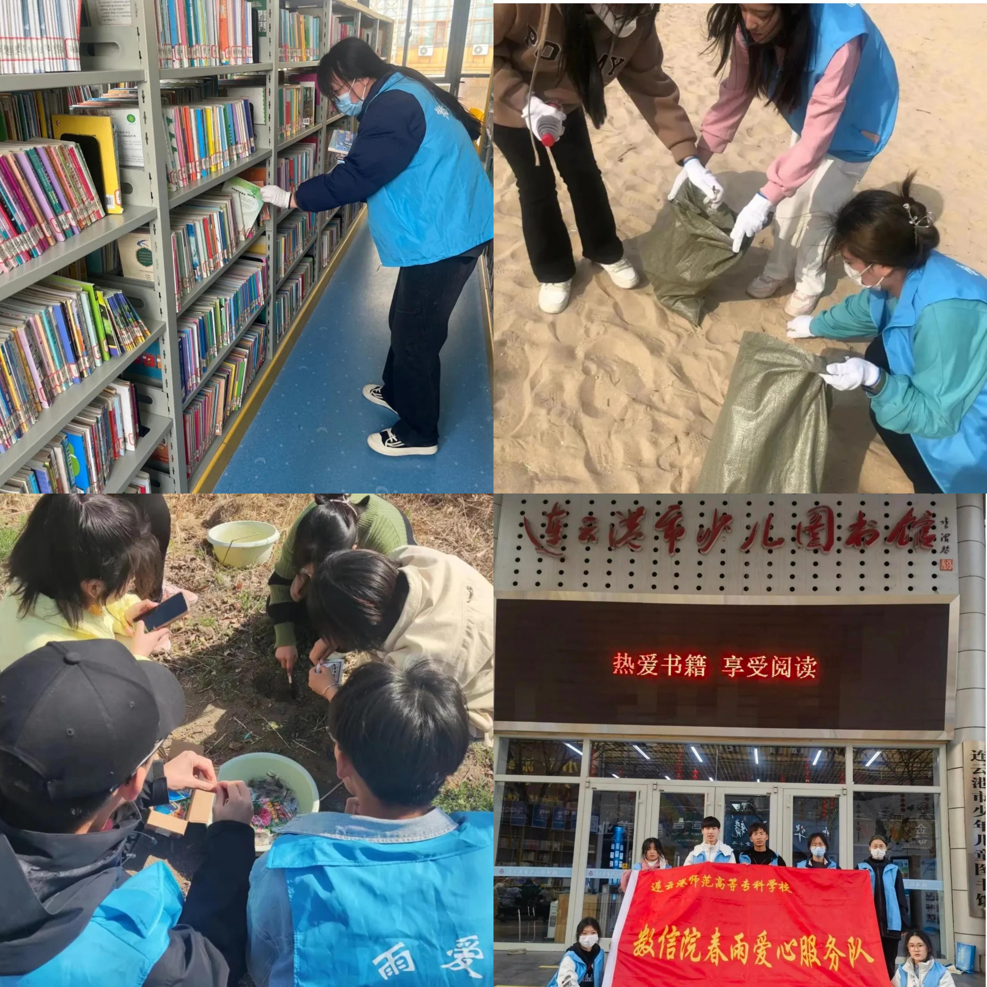图书募捐、校园值守、环境清扫,春雨爱心服务队留下了校园公益事业的点滴印记。“泛在”空间捐书计划,让闲置的图书“数”起来。结合劳动实践大课,推进3*3文明修身育人工程,春雨爱心服务队定期前往校园包干区开展“早安连师专”护绿文明实践活动,努力营造尊重劳动人民,尊重劳动果实,尊重劳动岗位的良好氛围。