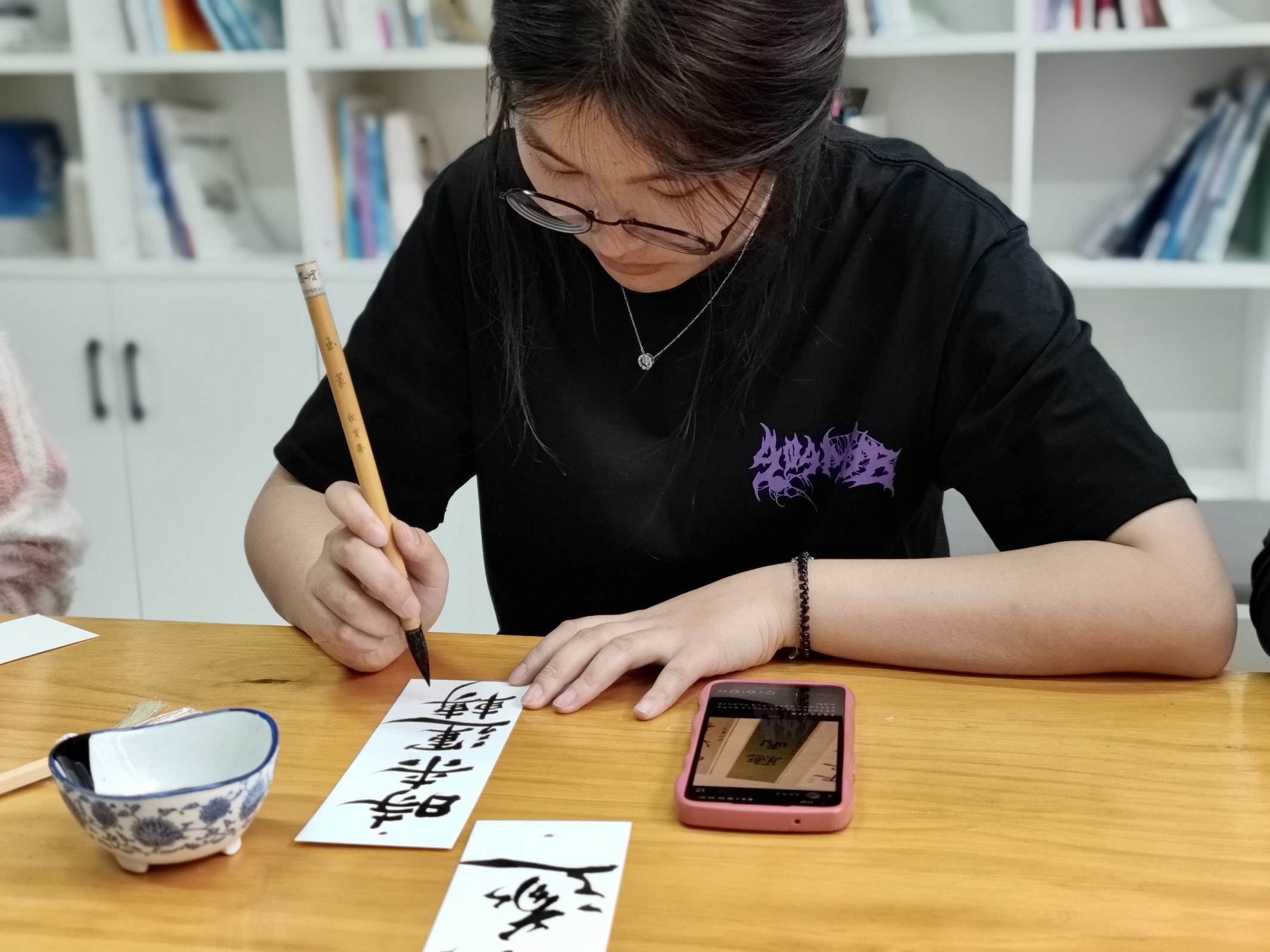 随后,支部成员拿起毛笔,在扇子和书签上写下祝福言语,这些祝福语或寄托着对家人的思念,或表达着对朋友的关怀,或传递着对生活的美好祝愿。每一句都充满了真挚的情感,希望能够在这个特殊的节日里,为大家带来一份温暖和喜悦。