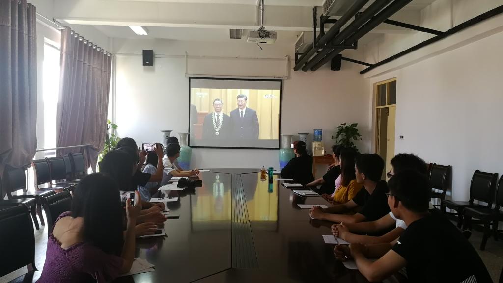 9月8日上午10时,全国抗击新冠肺炎疫情表彰大会在北京人民大会堂隆重举行。我院组织全体行政教工和部分学生在A420会议室集中收看庆祝大会直播盛况。其他教职工和学生通过电视、网络等多种渠道收听收看表彰大会。