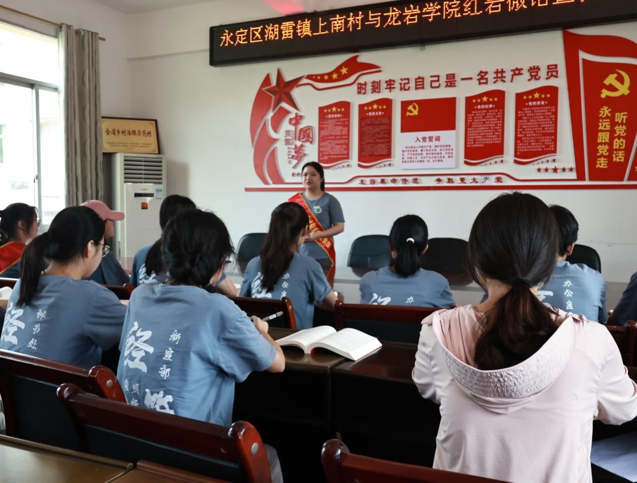 为深入学习贯彻习近平新时代中国特色社会主义思想,推动用党的创新理论铸魂育人,促进育人工作和宣讲工作高质量发展,7月12日,龙岩学院“红岩微语”宣讲团在指导老师张璐滢的带领下,前往龙岩市永定区湖雷镇上南村,联合上南村村民委员会开展“追寻领袖足迹,感悟思想伟力”基层专题系列宣讲暨青年联学联建活动。