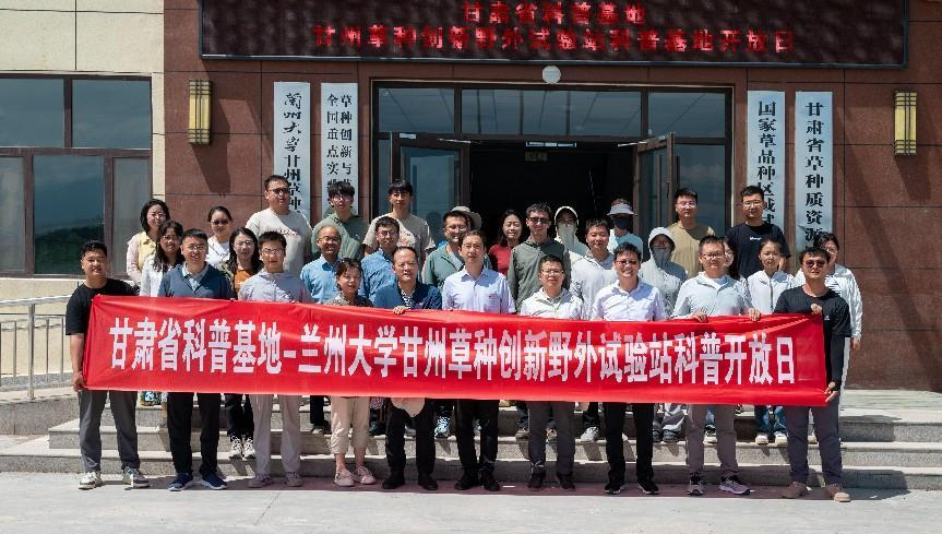 随后,举行了兰州大学甘州草种创新野外试验站科普基地首个科普开放日活动,30余名师生参加活动。张金林教授作为金城首席科普专家、甘肃省科普专家和甘州站科普基地负责人带领大家重温了习近平总书记“科技创新、科学普及是实现创新发展的两翼”的重要精神,并强调了草种创新野外试验站在推动全民走进草业中的重要作用。张吉宇教授作为甘肃省科普专家和试验站负责人向师生们介绍了甘州站建设的历史、发展定位、建设过程、基础条件、研究成果、科研队伍、管理水平等情况。两位老师带领大家参观了甘肃省草种质资源圃、育种试验田、网室、温室等基础设施,详细介绍了各草种的育种目标及育种技术,使师生们对乡土草及牧草新品种选育有了更深入的了解。