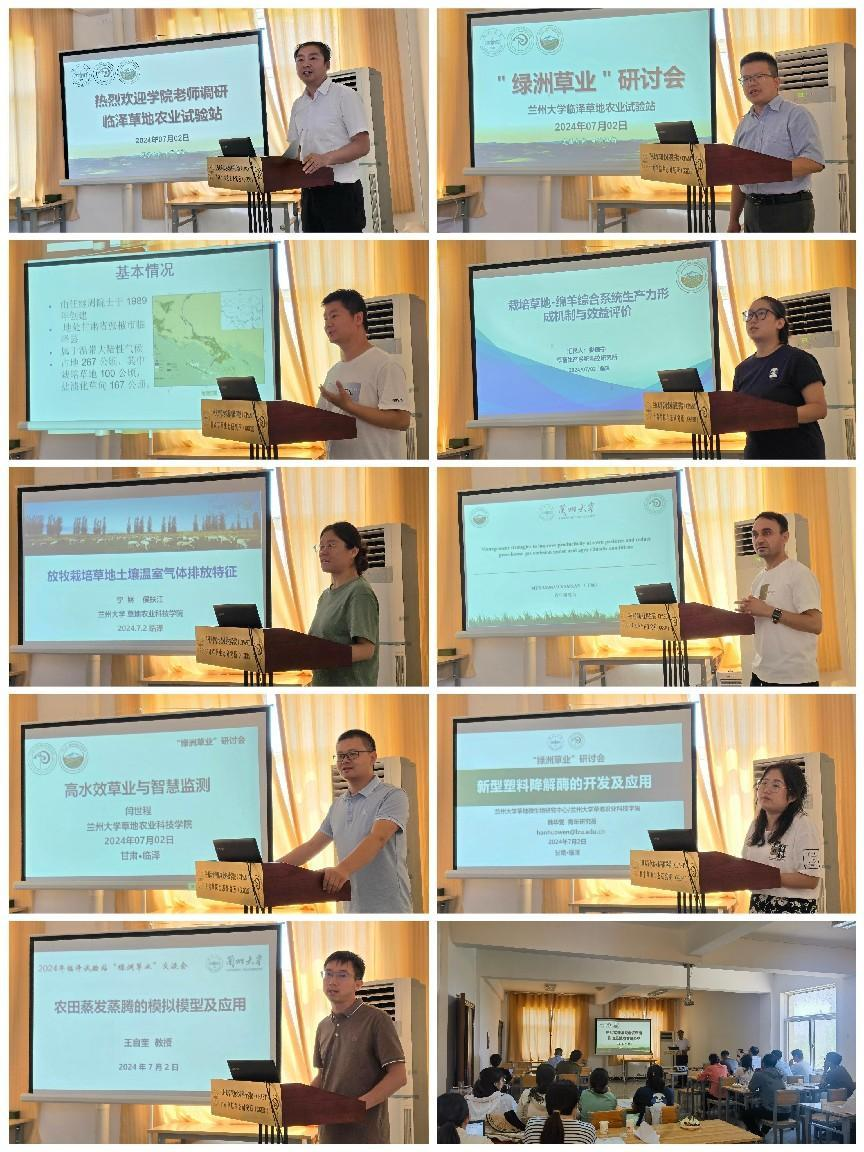 7月2日,在全国科技小院—甘肃临泽草业科技小院、兰州大学临泽草地农业野外试验站举行了庆祝建站35周年暨“绿洲草业”研讨会。研讨会由学院党委副书记李飞主持。范成勇在致辞中介绍了临泽试验站建立的艰苦历程、学院发展取得的成绩和存在的不足,希望大家继承和发扬以任继周院士、南志标院士为代表的老一辈草业科学家的奉献精神,抓住当前草业发展的重大机遇,坚守初心使命,积极为草地农业发展做出新的贡献。贾倩民教授介绍了试验站的历史、科研队伍、研究方向、承担项目、合作交流、社会服务、人才培养等情况。王自奎教授、闫世程青年研究员、韩华雯青年研究员、Muhammad Kamran青年研究员、娄珊宁博士后、宁娇博士后分别做了学术报告,就其各自的研究方向及成果进行了交流研讨。