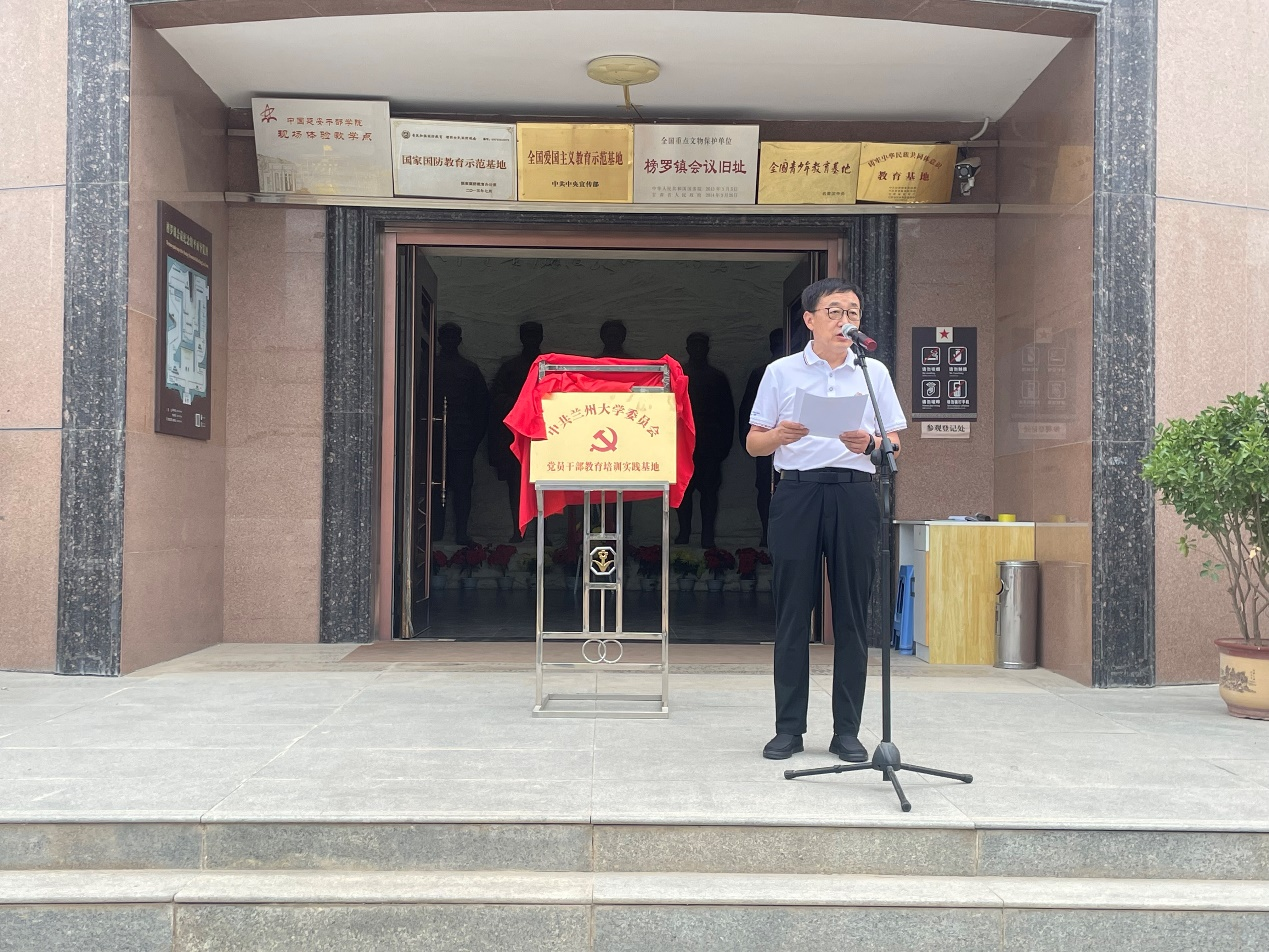 兰州大学党委组织部部长、党校常务副校长张继革在仪式上讲话时表示,开展本次主题党日活动,目的是组织引导党员干部在瞻仰革命遗址、感悟红色文化过程中赓续红色血脉、传承红色基因,加强党性锻炼、提高政治站位,以更加严明的纪律作风、昂扬的精神状态积极投身加快建设中国特色、世界一流大学的生动实践中。希望以此次党员干部教育培训实践基地揭牌仪式为良好契机,进一步深化学校和纪念馆之间的交流与合作。