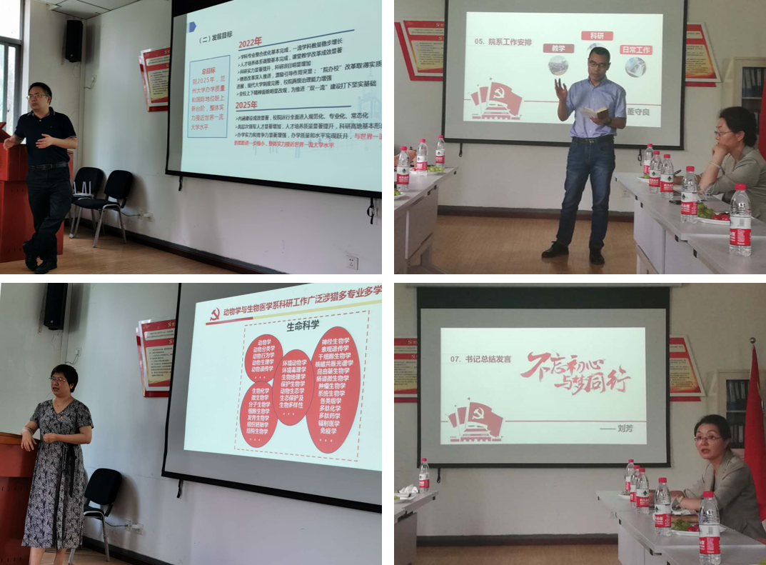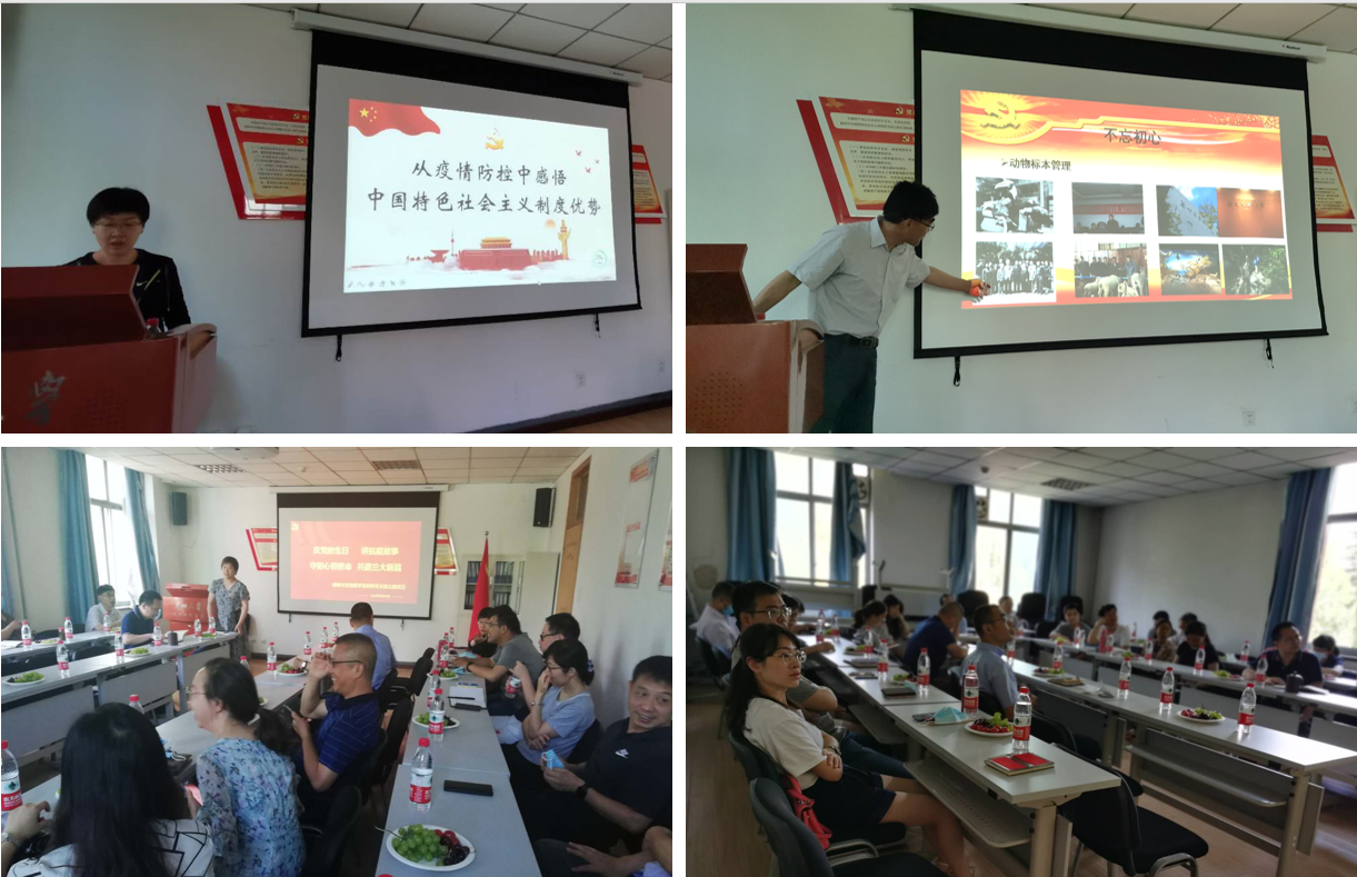 会议由支部书记程博同志主持。首先由组织委员彭雅丽同志带领大家进行主题为“从疫情防控中感悟中国特色社会主义制度优势”的时政学习研讨,从六个方面讲述了这次新冠肺炎疫情期间体现出的中国特色社会主义制度优势。紧接着,张立勋同志作了题为“守护西部生态安全屏障,关注生物多样性动态”的报告向老师们分享了自己扎根中国西北数十载,通过科研工作服务国家野生动物保护及生态文明建设的工作经验和收获。之后,程博同志作了题为“基层党建引领学科交叉共融,提升人才培养质量”的专题党课,细致讲解了《2035教育现代化》纲要主旨、通过对标国际国内一流院校科研及研究生培养体系突出了发展交叉学科及推动学科交叉的重要性,同时就党建引领全系的科研工作及研究生培养等方面的工作设想进行了汇报。