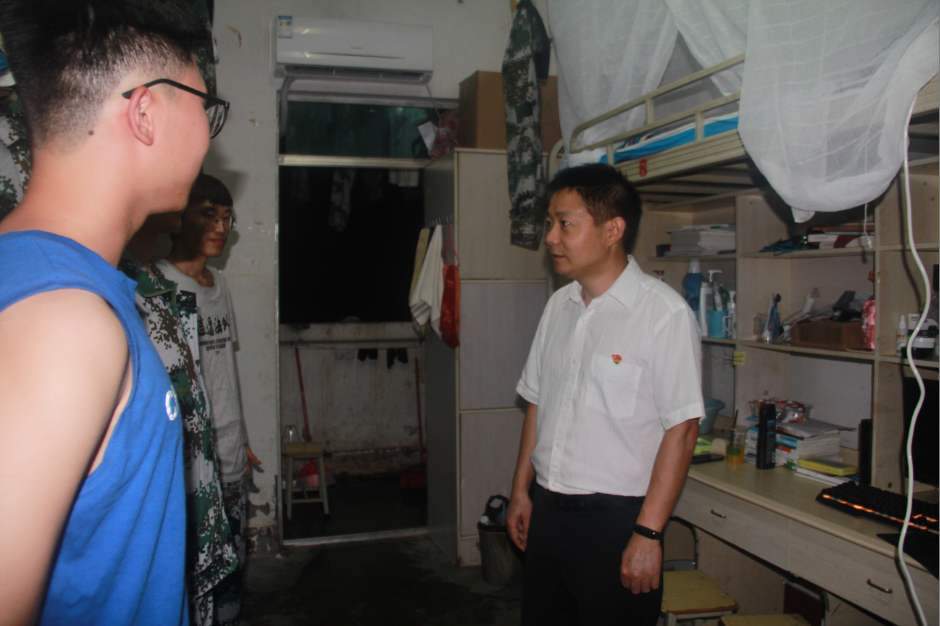 陈波一行走进2019级新生宿舍,详细询问同学们的入学报到、家庭情况、军训情况以及对学校环境的适应情况等。陈波对大家说,此次军训同学们,发扬了流血流汗不流泪的精神,经受住了高温和雨水的考验,没有退缩,同学们的意志、作风、身体素质等方面都有很大的进步。同学们要努力成为遵章守纪的模范,要扎实学习、努力练就过硬技能,希望同学们要把在军训中形成的习惯和传统带到今后的学习和生活中去,用辛勤的汗水共同打造属于我们的书香校园!