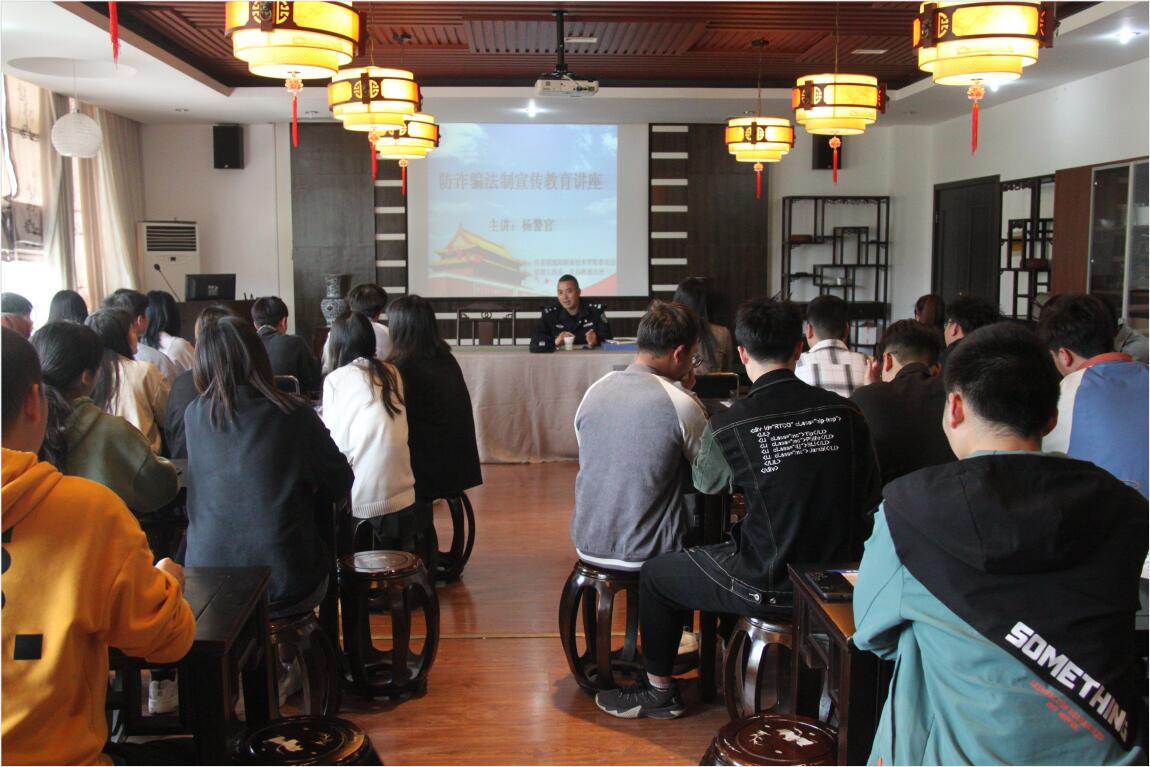 为丰富学生生活常识,提高学生防范意识,由共青团绵阳职业技术学院委员会主办,管理工程系、汉仙桥派出所承办的五四系列活动之防诈骗法制宣传教育讲座于4月21日在崇实楼A 305教室举行。管理工程系学生党支部书记、团总支书记郑静及全校学生代表100余人参加。讲座由郑静主持,汉仙桥派出所民警杨警官主讲。