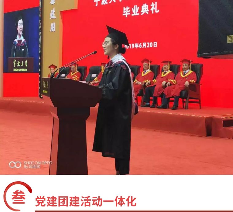 宁波大学人文与传媒学院历史系本科生党支部作为校团委确定的党建带团建改革试点单位,积极探索形成了党建团建一体化运行法,实现了党建团建的双创双赢局面,于2019年获得两个国家级奖项,党支部被教育部列为全国高校样板党支部,人文教育2015级团支部被团中央评为全国五四红旗团支部。党支部党建带团建的做法与经验向来校调研的团中央书记处书记作了汇报。
