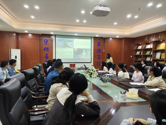 图 1 支部副书记胡研为大家讲解习近平总书记江西考察调研内容