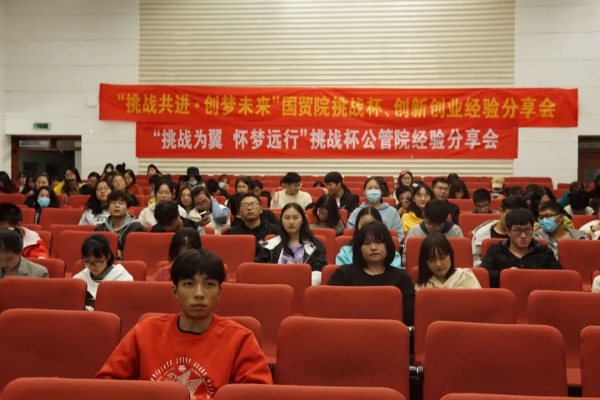 2020年10月30日晚,“‘挑战共进·创梦未来’挑战杯、创新创业经验分享会”在德经楼二楼报告厅开展。此次活动由我院和公管院学生会学术部主办,国贸2004陈乐担任主持人,创园吴小明老师、公管院吴文俊老师、投资1801周澳同学、金工1702周涛同学和国贸1702潘美羽同学作为分享嘉宾,旨在加深同学对于各种创新创业比赛的认知,引导激励广大学生努力学习、刻苦钻研、勇于创新,同时积极迎接2021年“挑战杯”江苏省大学生课外学术科技作品竞赛。