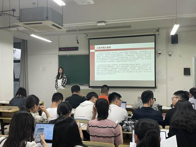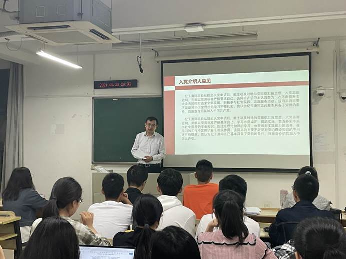 2021年5月28日晚,我院本科生仙林党支部在逸B-205教室举行新党员发展大会。大会讨论并投票表决了是方舟、盛朱灵、曹钰琳、范欣淼、李昱锟、毛渝茜、温智玉、李双圆、沈羽双、王湛鑫、沈忱、乔碧薇、陶源、邓文明、刀春园、费蔷、刘腾渊、刘葳洋、马欣月、王雨欣、王美琪、徐灏艺、奚哲隽、周彧、王泽天、纪玉潇26名发展对象的入党问题。此次会议由预备党员徐诗语主持。
