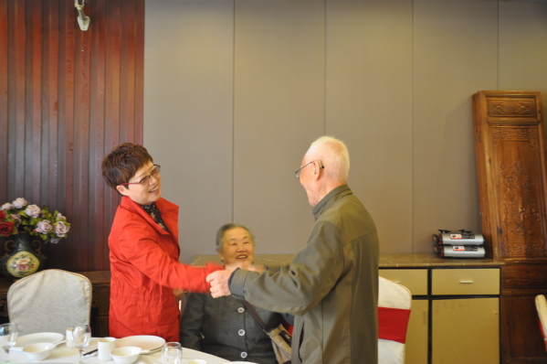 学院领导和同志们或帮老同志照相,或小心搀扶,与老教师们拉家常,嘘寒问暖,畅谈国家和学校学院喜人变化,其乐融融。