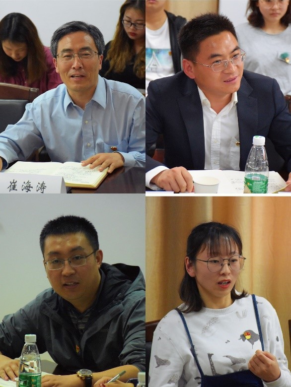 在互动环节中,教师代表王卫星表示受益良多,自身澄清了思政课不仅仅是思政理论课,他表示以后会将思政教育融入到自己的专业课教学中,升华专业课的高度。面对学生代表杨悦提出的“如何解决学生支部思政活动流于表面”的问题,徐川认为应该回看学生支部书记本身,一方面要有真信、真懂、真热爱的同学参与支部工作,另一方面支部书记要自己做到理论性与实践性的统一,才能带领同学们将思政工作入脑入耳入心入行。老师们和同学们纷纷表示,要时刻将思政教育同专业学习和科研实践相结合,做到全员同频共振,各科同向同行。