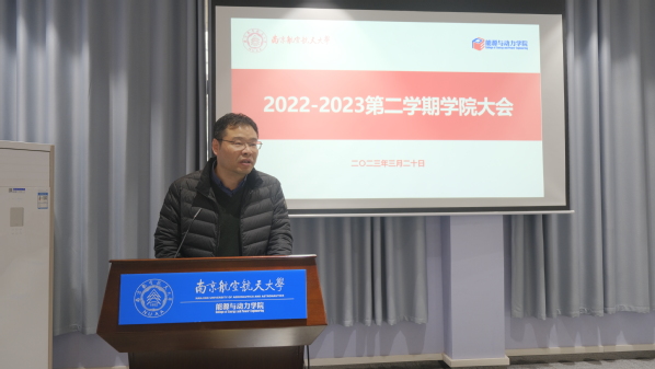 院长毛军逵代表学院领导班子作2022年度工作成果汇报,学习传达学校干部教师大会精神,部署新学期工作。他指出单校长的报告总结回顾了学校2022年工作,对2023年重点工作进行安排部署,分析学校未来发展形势,指明下一阶段发展思路和主要任务。毛军逵强调要深刻学习领悟郑书记讲话精神,深入学习贯彻党的二十大精神和校第十七次党代会精神,在一流大学新征程上推动学校各项事业再上新台阶。毛军逵围绕党建、学科建设、人事人才、人才培养、学生、科研、安全保密、综合能源研究院等方面,梳理学院本年度重点工作,他强调全体教职工要紧密围绕学校、学院建设发展目标,立足自身岗位,全力推动学院快速稳健发展。
