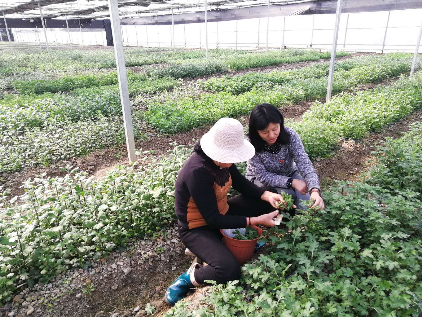 教师党员们实地查看了基地菊苗扦插育苗工作,并针对目前基地育苗过程中存在的问题,就规范插穗制备、扦插、采穗圃病虫害防控等扦插育苗关键技术对基地生产人员进行了现场指导。