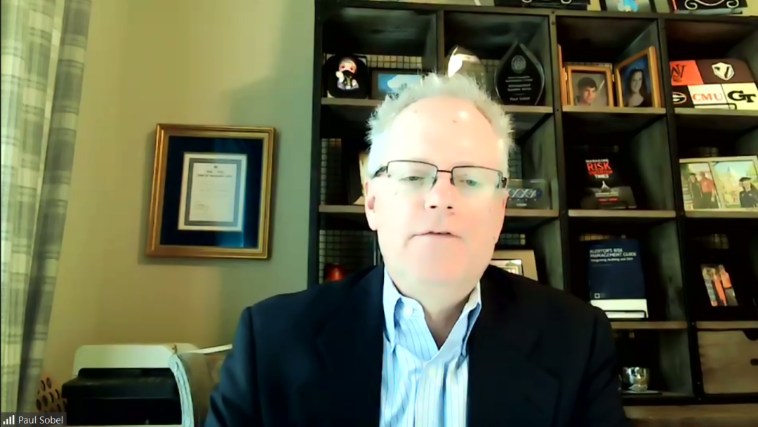 政府审计学院、研究生院、审计处、国际合作与交流办公室、审计中外人文交流研究院于线上联合举办了南京审计大学“国际内部审计高端讲坛”第二期活动。本次活动由南京审计大学政府审计学院执行院长王士红教授主持,由美国反虚假财务报告委员会下属发起人委员会(COSO)主席保罗·J·索贝尔先生(Mr. Paul J. Sobel)开展了以“如何充分运用COSO框架提升绩效”为主题的讲座。南京审计大学海外荣誉院长、国际内部审计师协会原秘书长兼首席执行官理查德•钱伯斯教授(Prof. Richard F. Chambers)作为嘉宾出席讲座并致辞。校内外180余名师生参会。