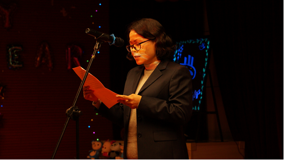 第二篇章的主题为“律动青春”,悠扬的笛声在室内弥漫开来,像一首田园诗歌恬静悠远,又如一弯淙淙溪流,婉转清脆,全体师生都沉浸在唐浩源同学带来的《小城谣》笛子独奏中;小品《失败没有百分百》充分展现了当代青年真善美的优秀品质;莅临晚会现场的班主任们也毫不逊色,由学工处陈秋怡、任维燕、苏刚、时慧老师带来的《流星雨》更是嗨爆全场,全场观众热烈挥舞手中的荧光棒为老师喝彩,将晚会推向了新的高潮。