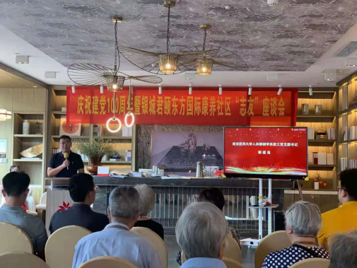 7月11日下午,为庆祝中国共产党成立100周年,同时为感恩“志友”们的无私奉献、大爱无疆,更为加强医学生感恩教育、人文教育,以期给他们上一堂生动的“思政课”。为此,选在这样一个惠风和畅的日子,由南京市红十字会、栖霞区红十字会、南京医科大学人体解剖学系教工党支部主办,银城君颐东方国际康养社区、南京市红十字会捐献遗体器官志愿者之友协会、南京市红十字会栖霞区志友分会承办,在银城君颐东方康养中心活动室隆重举行“庆祝建党100周年暨银城君颐东方康养中心‘志友’小组成立座谈会”。