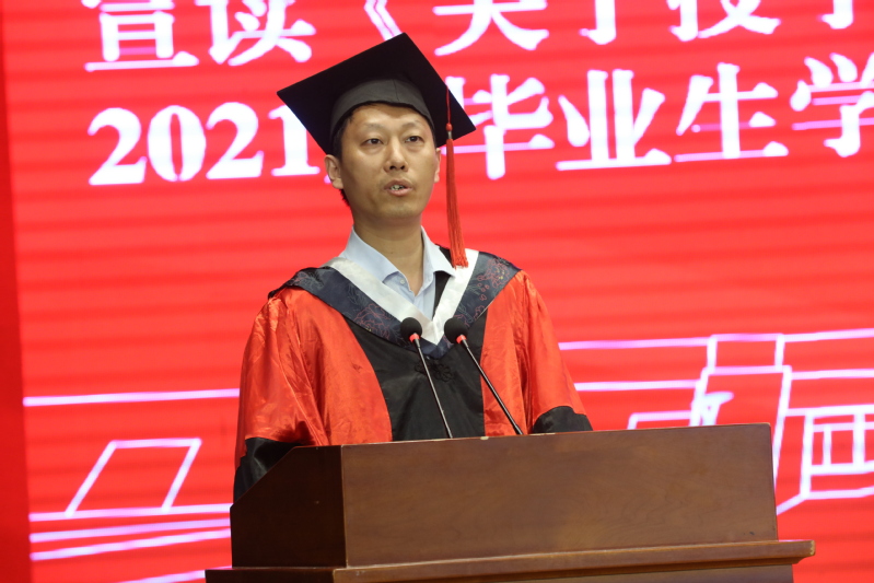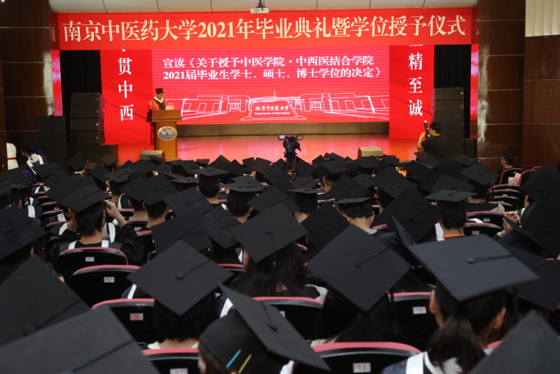 典礼伊始,中医学院·中西医结合学院党委书记、分学位委员会副主席倪昊翔老师宣读《关于授予中医学院·中西医结合学院2021届毕业生学士、硕士、博士学位的决定》,分学位委员会委员依次为2021届本科生、硕士生、博士生颁发学位证书、拨正流苏。
