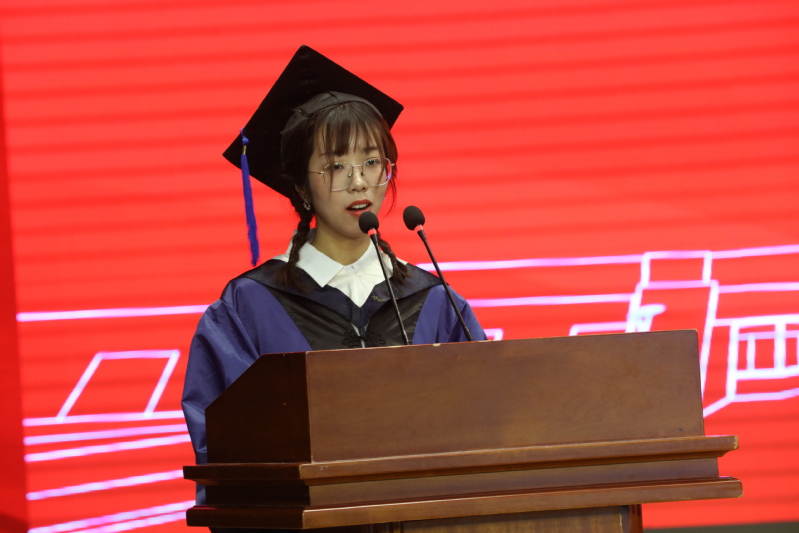 江苏省普通高校省级优秀毕业生、校最具影响力毕业生2016级中西医临床医学专业孙广达同学、江苏省普通高校省级优秀毕业生2018级中药学专业齐卓操同学分别代表本科生、研究生发言。他们回顾了自己的求学生涯,向全体老师致以衷心的感谢,并代表全体毕业生向母校和学院郑重承诺:牢记初心使命,坚定信仰信念,恪守医德,坦诚做人,为中医药事业的蓬勃发展贡献力量。