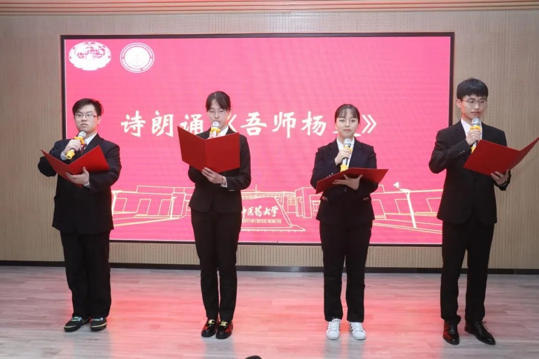 本科生获奖代表祖玥、陈婧芊、王鹏程和林海辰同学创作、朗诵一首《吾师杨进》,表达对杨进老师的感恩之心和敬仰之情。