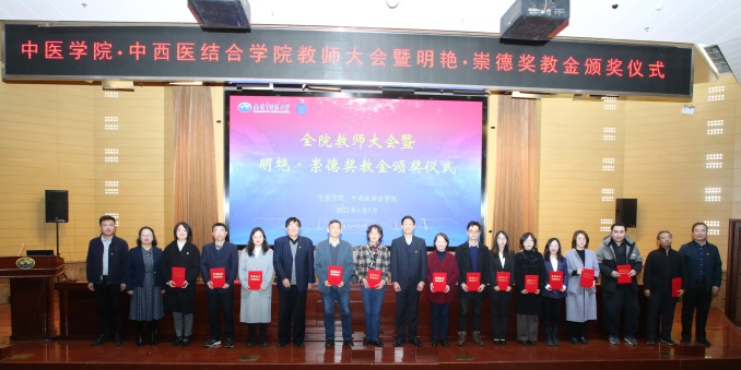 会上,学院党委书记倪昊翔宣读了关于表彰中医学院中西医结合学院2020年度、2021年度明艳崇德奖教金获得者的决定,学院领导依次为获奖教师代表颁奖。