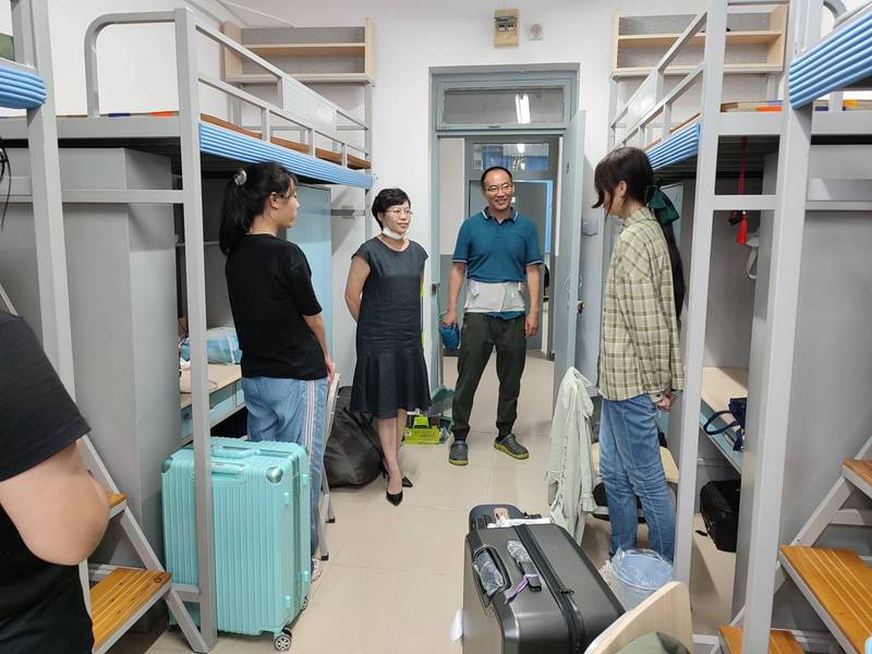 学院领导心系新同学,关注他们的成长。学院党委书记张守民教授带领副书记刁立达、王蔚老师,副院长王佰全、孙平川、郭东升、汤平平老师,在辅导员的陪同下前往10宿、14宿慰问看望新生。院领导们详细询问了新生们的籍贯家乡、入住体验和发展规划,为新生们送去勉励,并寄予殷切期望。了解新生们的基本情况后,院领导们提出了殷切嘱托:在生活上,要养成良好的作息和卫生习惯,营造和谐友好的宿舍氛围,与室友互相监督、共同进步;在学习中,要及时调整心态,适应本科的学习节奏,以学业为重。最后,院领导特别强调要遵守学校在疫情防控常态化期间的各项规定,做好自身防护、坚持锻炼,以强健的体魄迎接大学四年生活。