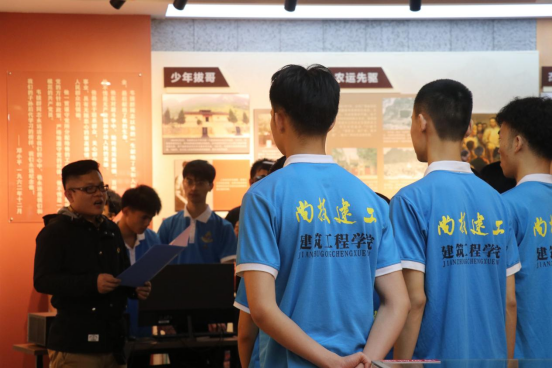 纪念结束后,全体人员踱步到李明瑞、韦拔群烈士纪念馆中,在革命先烈的背景下,由第三党支部党员教师蒙良柱作为烈士后代代表讲述外公梁式杰前辈参加革命斗争的英勇事迹。在蒙老师的真情讲述中,同学们了解到,梁式杰前辈1944年开始参加革命工作,1950年在灵山那隆9月庙战斗牺牲,曾参加过大山村、油麻山村等大大小小的剿匪战斗,即使受伤未愈仍然坚持战斗,一直到牺牲那一刻,都始终保持着作为一名共产党员随时准备为党和人民牺牲一切的党性觉悟,听完故事后的同学们深受动容,心中升起由衷的敬意。在同学们问及蒙老师关于对梁前辈事迹以及自身身为党员的感受时,蒙老师坚定地回答到:革命先烈是靠着对党的绝对忠诚,对国家的无限热爱以及对人民的深刻关怀而坚持战斗、敢于奉献生命的,自己作为一名烈士后代和党员教师,必须传承先烈的红色基因,敬党爱党忠诚于党,艰苦奋斗,始终履行教师职责,传道授业、育人成才,为国家培养更多品德兼备的时代青年。最后,在郑思老师的引导下,同学们在烈士遗像前齐声朗诵纪念篇章《龙州起义旧址》,朗诵完毕后,同学们还有序参观了纪念馆,观看了李明瑞、韦拔群两位革命英雄的事迹,重温了革命时期的沙场风尘、感受党的千秋伟业。