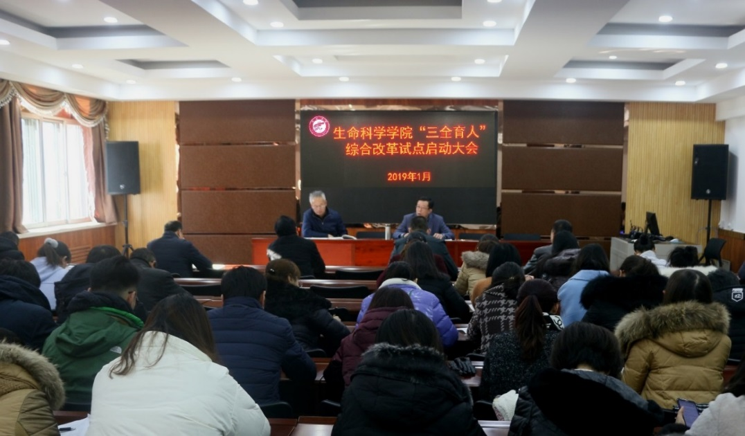 2019年1月16日下午,生命科学学院“三全育人”综合改革试点启动会议在文萃校区知本楼二楼报告厅召开。学院领导和全院老师及学生代表参加。