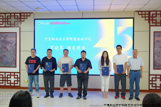 活动伊始,宁夏职业技术学院艺术设计学院院长王彦国致辞,他回顾了2025届毕业生的成长足迹,并展望了学院在深化教学改革、服务地方发展上的坚定步伐。随后,艺术设计学院副院长冯雪驱宣读了“米兰设计周”职教宁夏赛区组委会成员名单,并由苏晓军副书记为组委会成员代表颁发聘书。