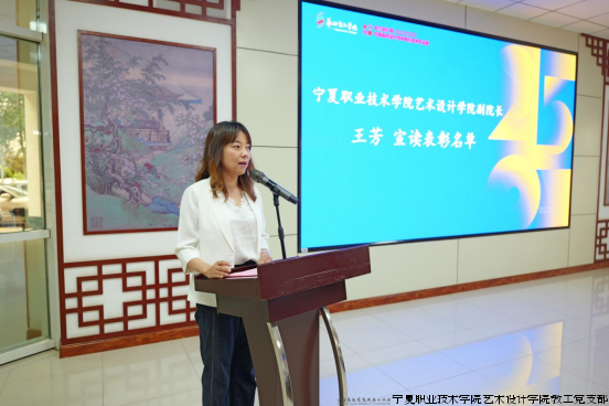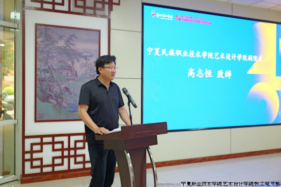 宁夏民族职业技术学院艺术设计学院副院长高志恒作为组委会副主任代表发言,他深刻阐明了赛事对促进校际协同、产教共育的重大意义。紧接着,艺术设计学院副院长王芳宣读了2025届毕业设计“优秀作品”表彰名单,吴轶勤部长为获奖学生代表颁发荣誉证书。