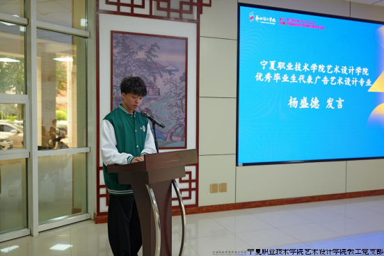 优秀作品学生代表2025届广告艺术设计专业毕业生杨盛德同学上台发言,分享了他的创作心得和成长历程。