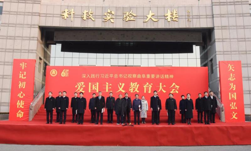 戚万学向全校党员师生发出号召:”让我们牢记习近平总书记殷切嘱托,不忘初心,为国弘文,朝着建设孔子家乡一流大学的目标,奋勇前进!”