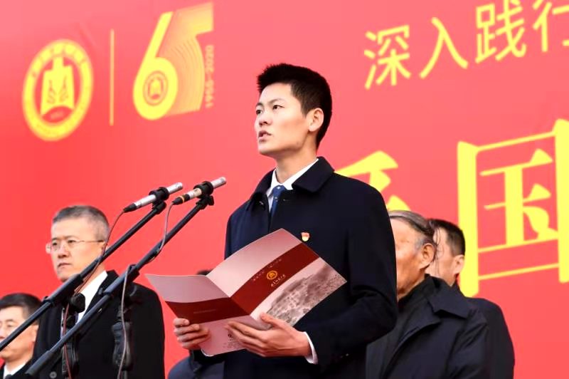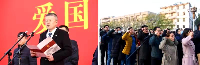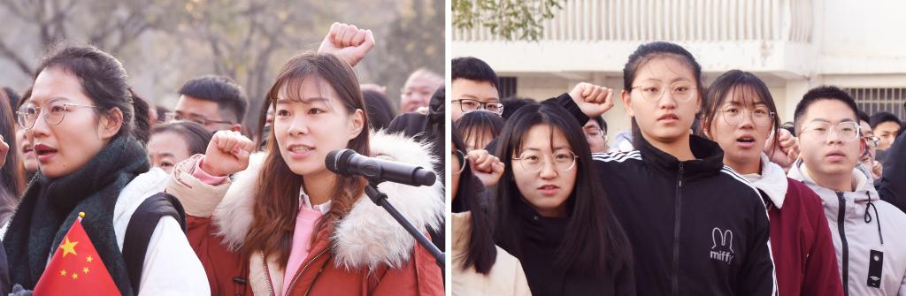 青年教师代表、山东青年五四奖章获得者、有突出贡献的中青年专家满忠晓教授,学生代表、校学生会主席李泳儒同学,分别带领在场教师和学生庄重宣誓。