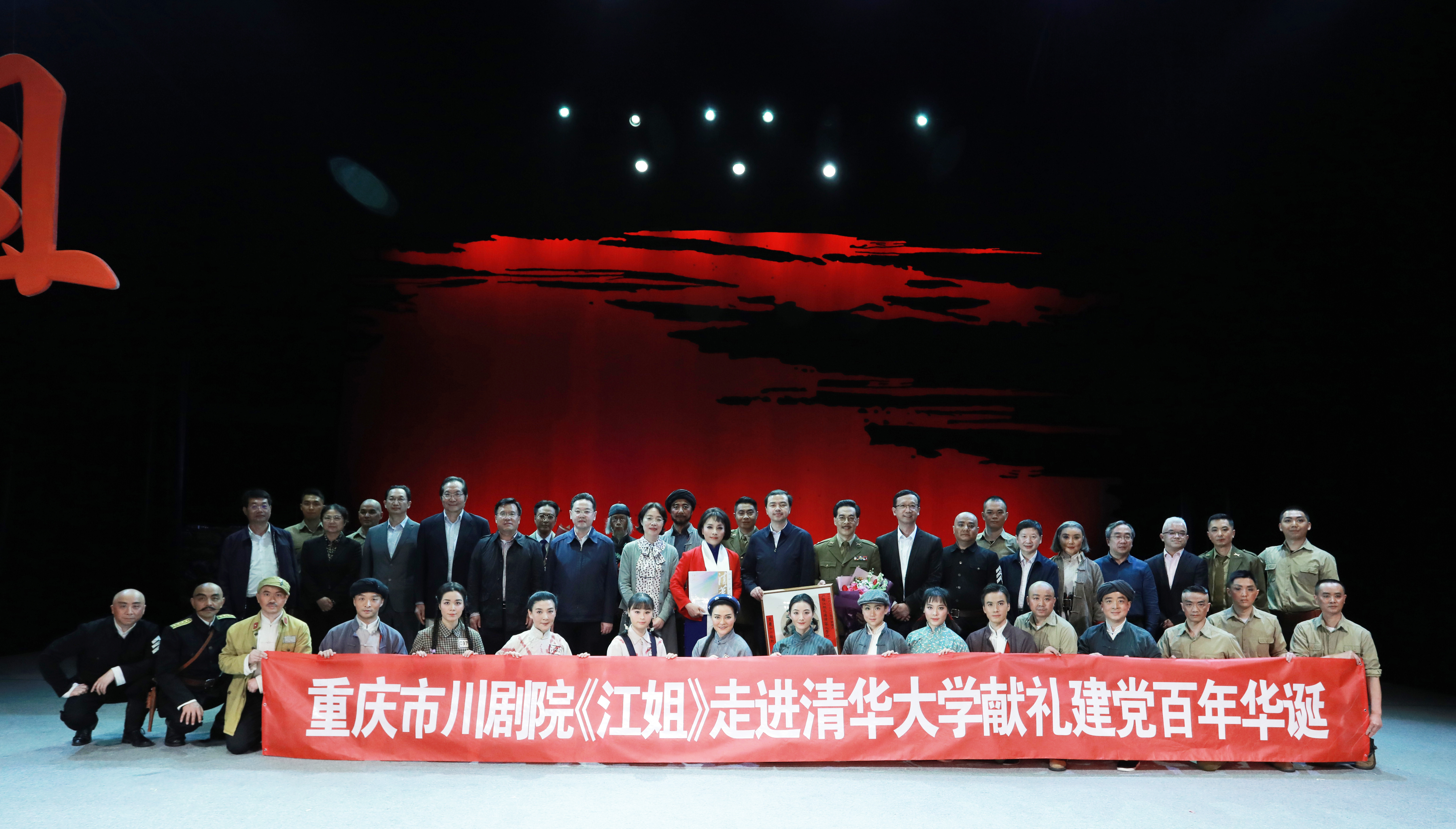 5月6日、7日晚,重庆市川剧院出品的大型红色经典剧目川剧《江姐》走进清华大学,亮相新清华学堂。《江姐》深情演绎发生在重庆的红岩故事,弘扬社会主义核心价值观、讴歌传承英雄精神,为清华师生带来了巴腔渝调的重庆本地传统戏剧和爱国主义革命精神结合的崭新体验,上了一场生动鲜活的党课。最高人民检察院党组成员、政治部主任潘毅琴,文化和旅游部科教司司长噶玛泽登,重庆市文旅委党委书记、主任刘旗,清华大学党委副书记向波涛等校内外嘉宾受邀观演,共计2000余名师生在新清华学堂观看演出。