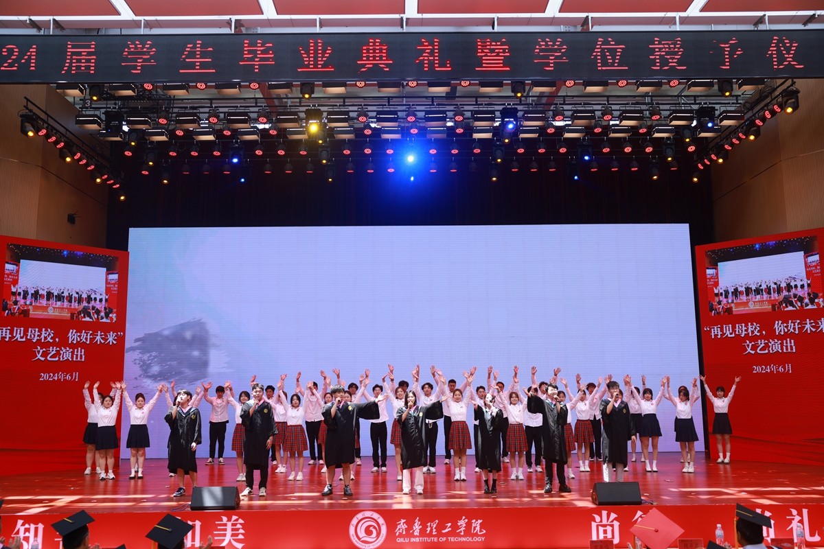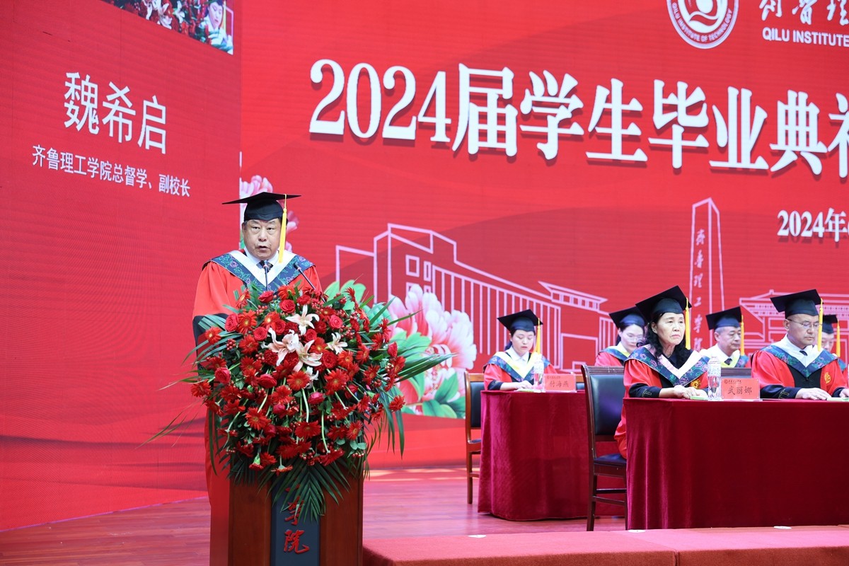 典礼上,表彰了2024届省级优秀毕业生、2024年大学生志愿服务西部计划优秀组织单位和先进个人,为2024年齐鲁理工学院大学生志愿服务西部计划志愿服务队授旗,教务处、学团工作处向学校校友工作委员会移交了2024届毕业生名单。