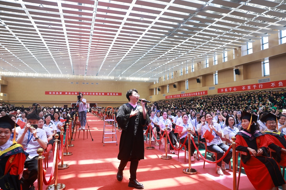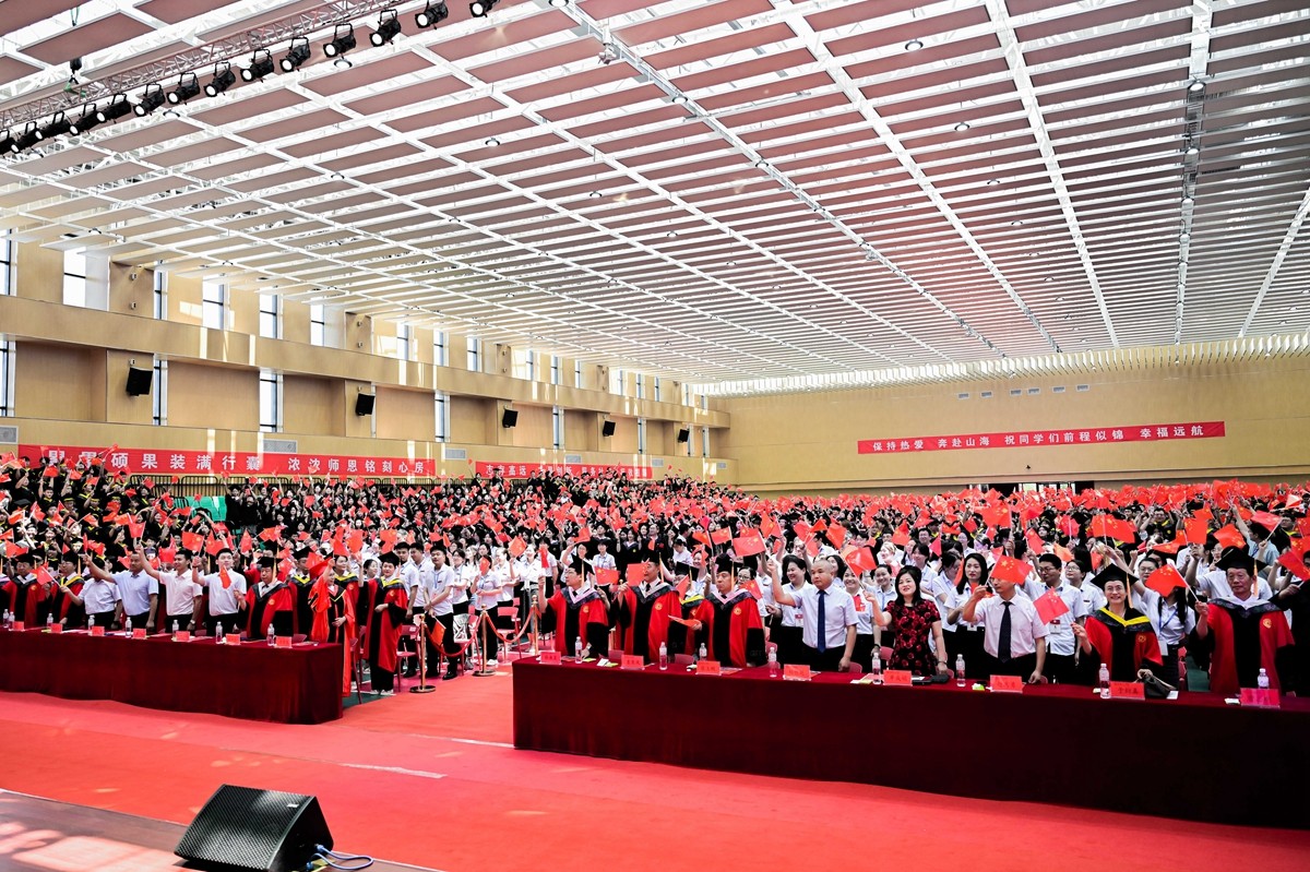学位授予仪式结束后,学校领导与毕业生共同观看了“再见母校 你好未来”文艺演出。最后毕业典礼和学位授予仪式,在师生高唱《我和我的祖国》的歌声中徐徐落下帷幕。
