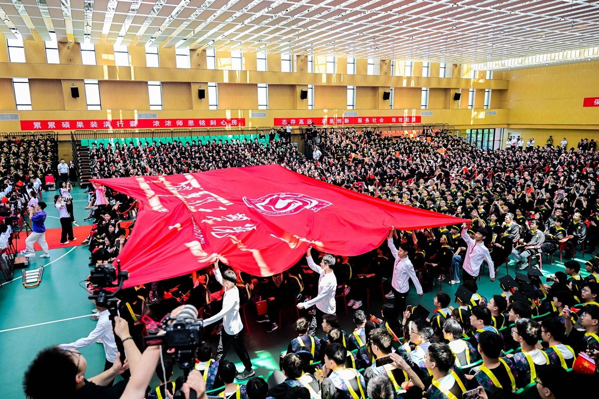 学位授予仪式上,毕业生们满怀喜悦和激动的心情,依次走上主席台,由学校学位委员会委员拨穗正冠、授予学位证书,并合影留念。