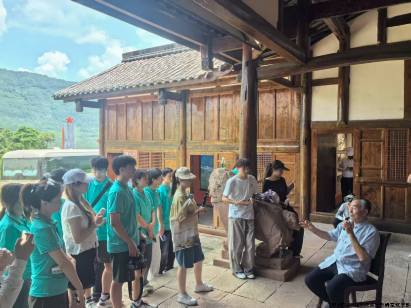 在通江县,实践团队参观了红四方面军总指挥部旧址纪念馆、瞻仰了川陕革命根据地红军烈士陵园,并在通江红军城、得汉城村等地实地探寻川陕省税务总局、川陕省工农银行石印局、造币厂等遗址现貌。在川陕苏区后勤中心旧址陈列馆前,80岁高龄的老党员李宗高以《卸下门扣造刀枪》为主题,带来了一堂特别的党课,也让团队成员深深感悟到人民支持的伟力是革命胜利最坚实的根基。