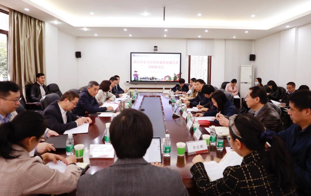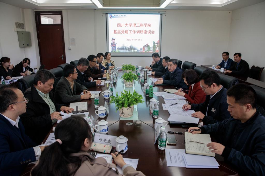 为进一步贯彻落实新时代党的组织路线,全面加强基层党组织建设,推动党建与事业融合发展,连日来,四川大学党委书记王建国分别主持召开了文科、理工科、医科、机关部处及业务实体单位基层党建工作调研座谈会,广泛听取各基层党组织对照《四川大学加强基层党建工作二十五问》自查整改以及做好党支部标准化规范化建设工作的情况,听取进一步加强和改进我校基层党组织建设的意见和建议。