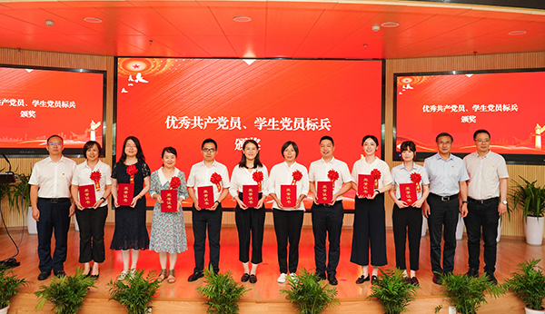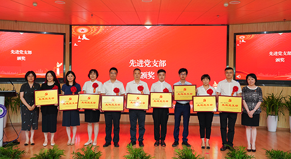 党委副书记、纪委书记沈颉飞宣读了院党委关于表彰先进党支部和优秀共产党员的决定,院党委书记谭静、院长叶玲为先进党支部颁奖,党委副书记林云锋、副院长祝颂松、工会主席王晓毅为优秀个人颁奖,受表彰的优秀共产党员代表王剑同志作了交流发言。